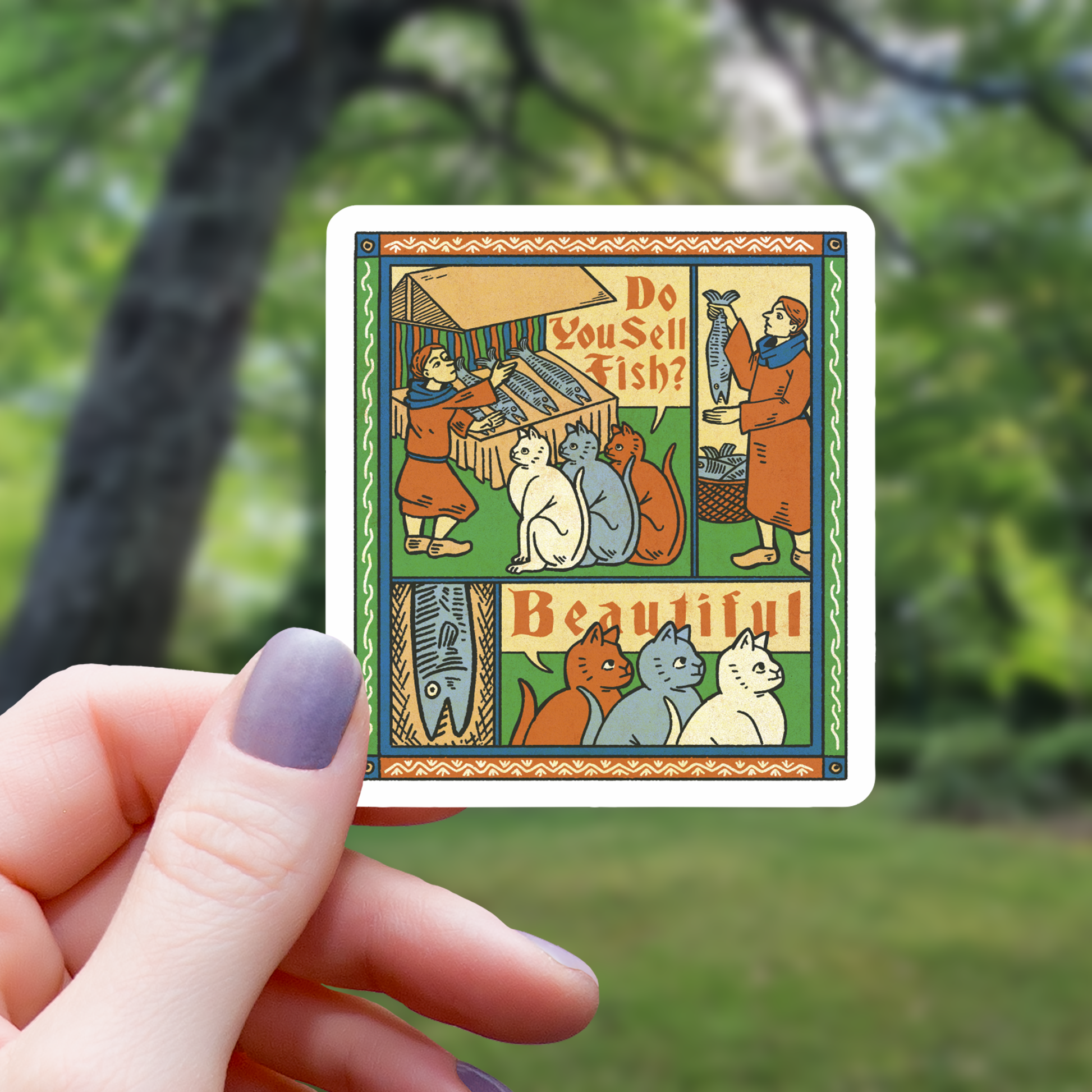 Ancient Medieval Cat Tapestry Sticker - 3"