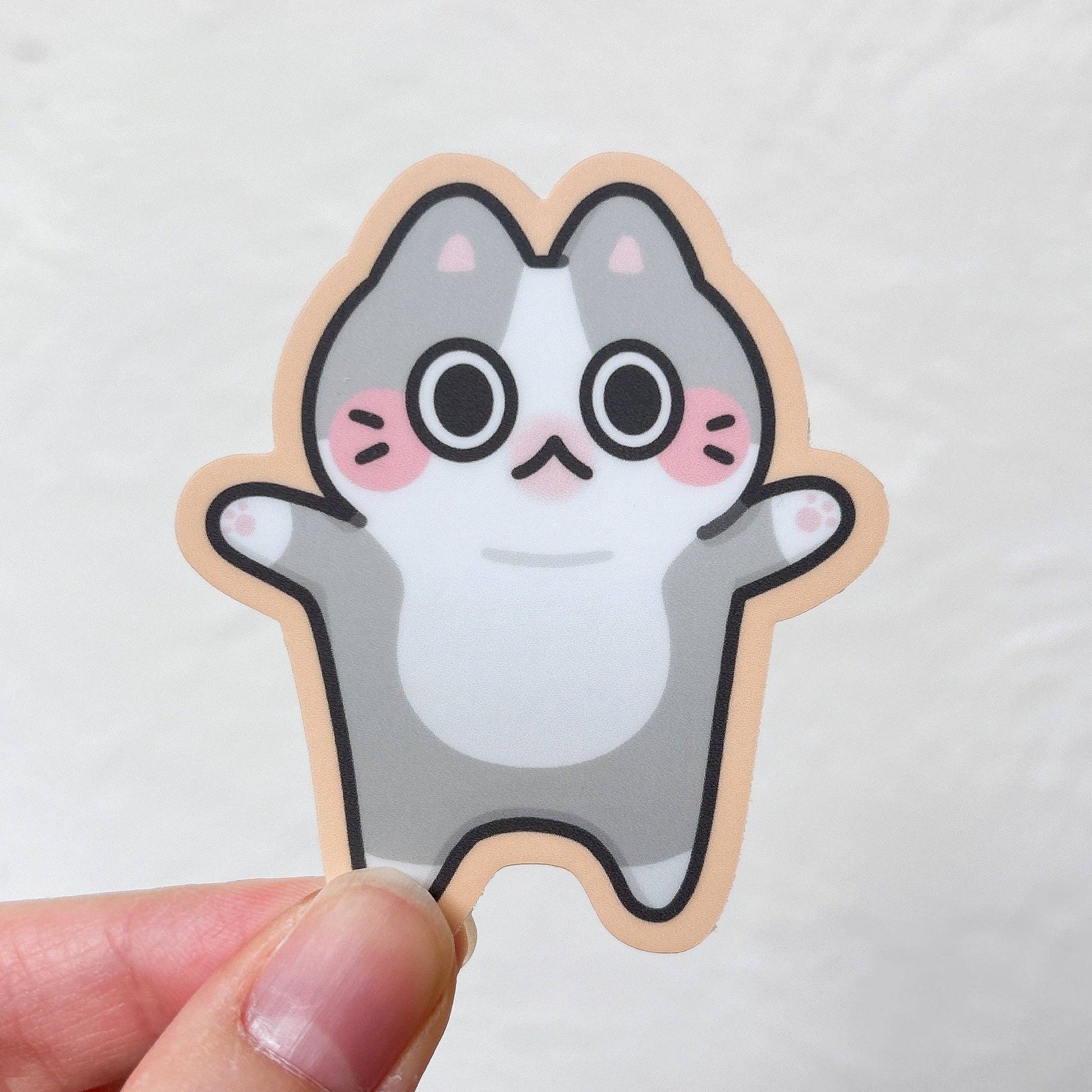 * Base cat measures approximately 2.4 in x 2 in (ie. Polite Cat). Dimensions of each sticker differ according to additional details that extend longer or wider than base cat (individually up to 3 in width and 2.7 in height)